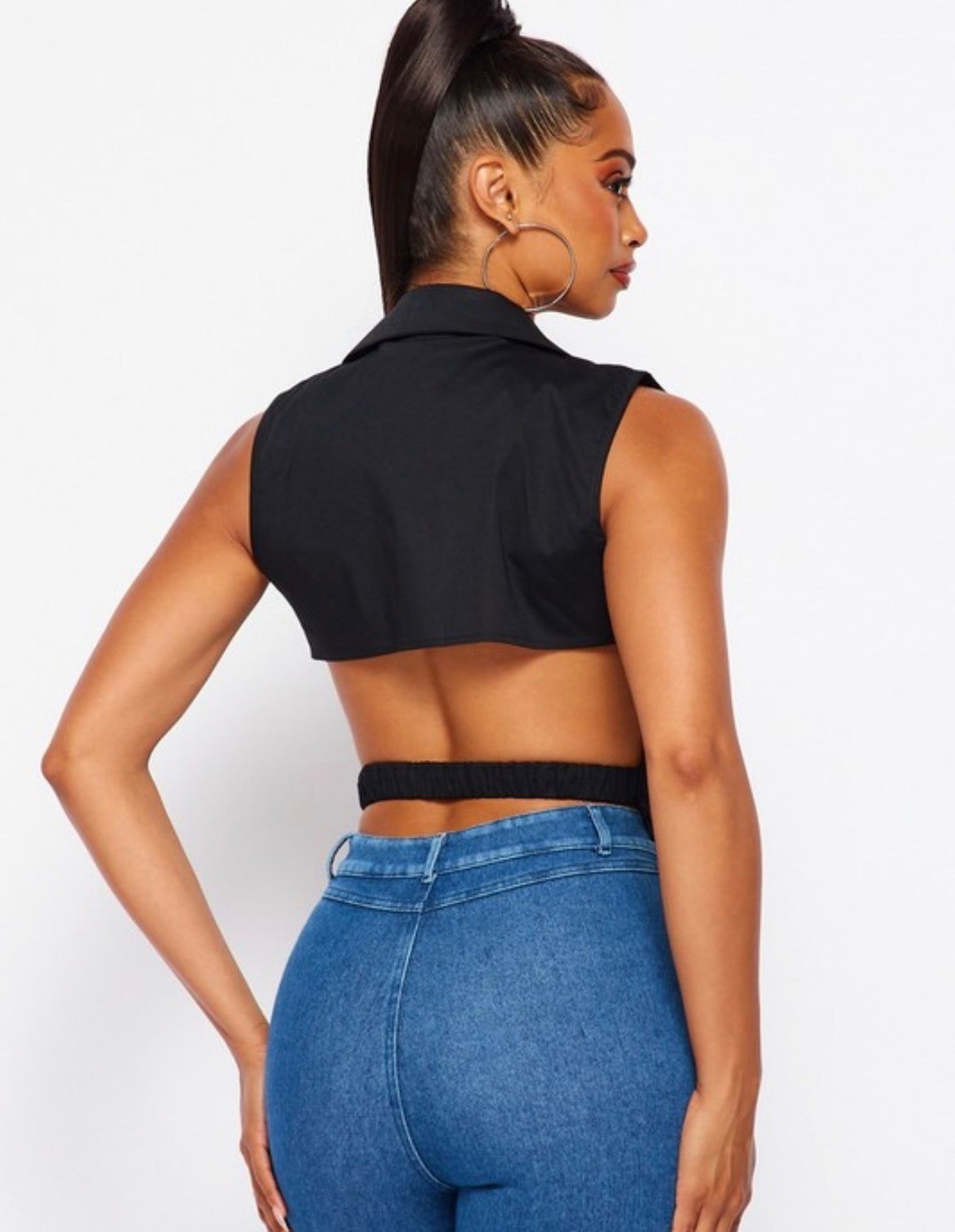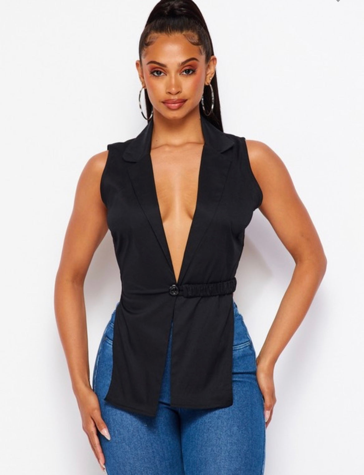 This multipurpose waistcoat can be a sexy top all on its own or the perfect overlay for a simple t-shirt or tank top to jazz up a simple look Jean and t-shirt look. An OTT Must Have!